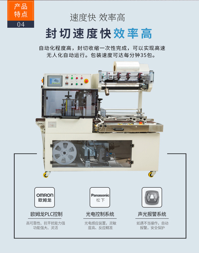 全自動封切機(jī)具有密接功能,專為包裝小產(chǎn)品設(shè)計。廣泛應(yīng)用于軟件、食品、化妝品、印刷、制藥及地板、陶瓷、飲料、五金等行業(yè)的特大批量收縮包裝。