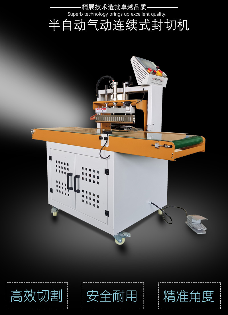 連續(xù)式封切機(jī)有立臥兩用封口之功能,適用于所有塑料薄膜的封口及制袋,是食品廠、化妝品廠、藥廠等單位的理想封口設(shè)備,可連續(xù)運轉(zhuǎn),還可根據(jù)用戶需要打出日期、批號等