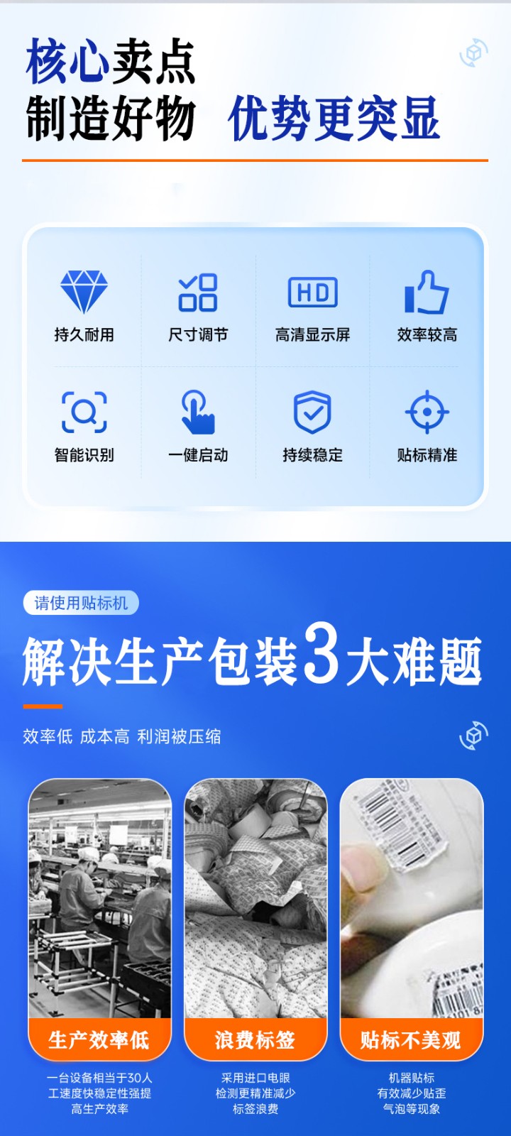 - 推送機(jī)構(gòu)根據(jù)容器移動(dòng)速度同步向下推送標(biāo)簽,確保標(biāo)簽在容器移動(dòng)過(guò)程中 “無(wú)卡頓、無(wú)偏移” 地套合,套標(biāo)位置誤差≤±0.5mm。
