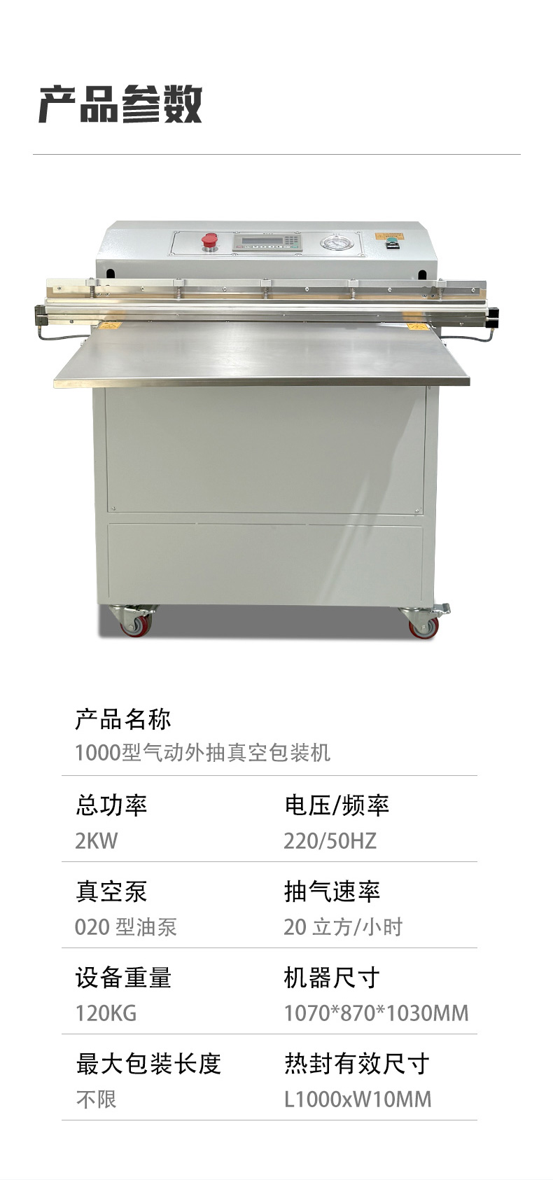 外抽真空包裝機(jī)是通過外部抽氣組件抽取包裝袋內(nèi)空氣并密封,以實(shí)現(xiàn)物品防潮、保鮮、防塵的設(shè)備,核心優(yōu)勢是能包裝超腔體尺寸、怕壓或不規(guī)則形狀的物品。