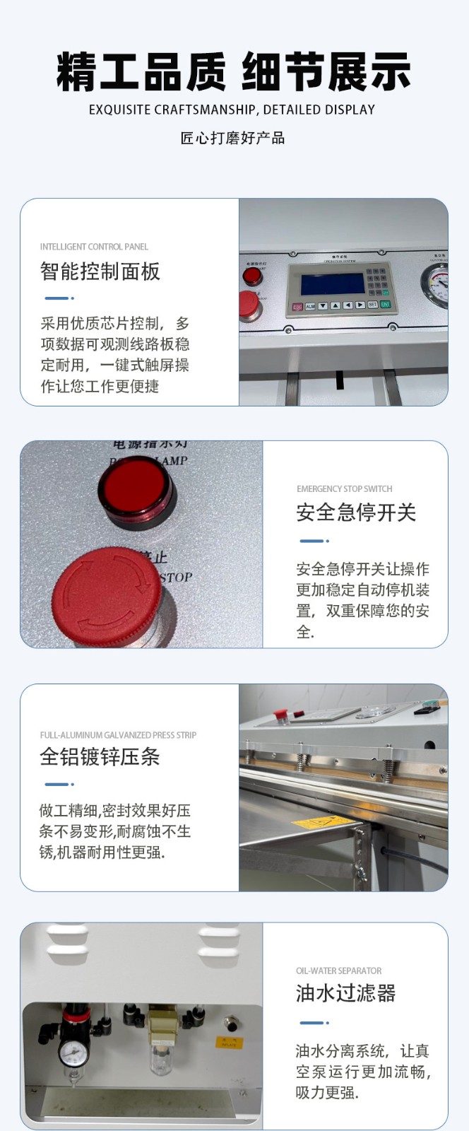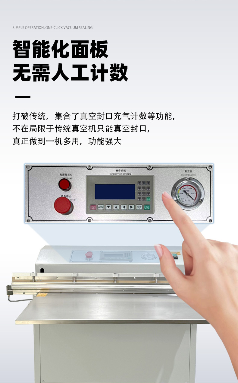 - 適配多場景:支持 PE、PA、鋁箔等多種包裝材料,可切換 “真空封口”“充氣保鮮” 兩種模式,兼顧工業(yè)防銹與食品保鮮需求。