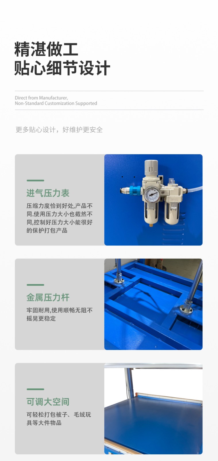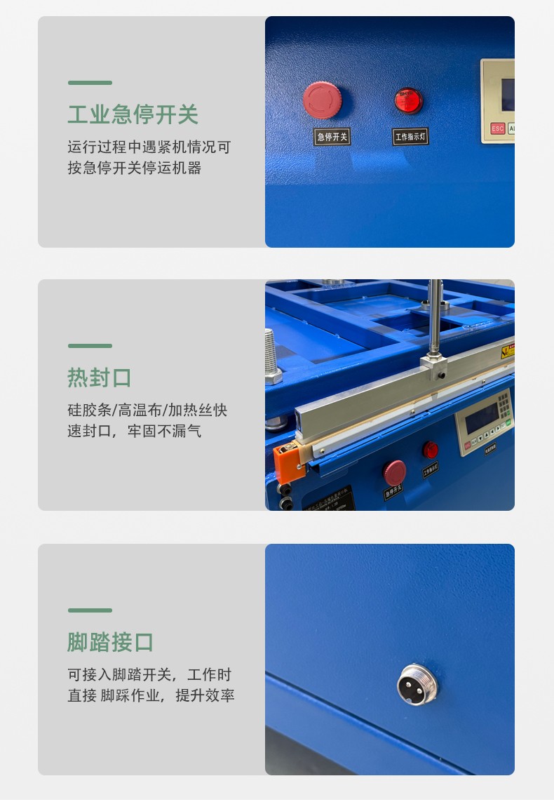 真空壓縮封口機(jī):集成抽真空功能,先抽走包裝內(nèi)空氣(如食品袋、零件袋),再加壓封口,適合需要防潮、保鮮、防氧化的場(chǎng)景(如肉類真空包裝、精密零件防銹包裝)。