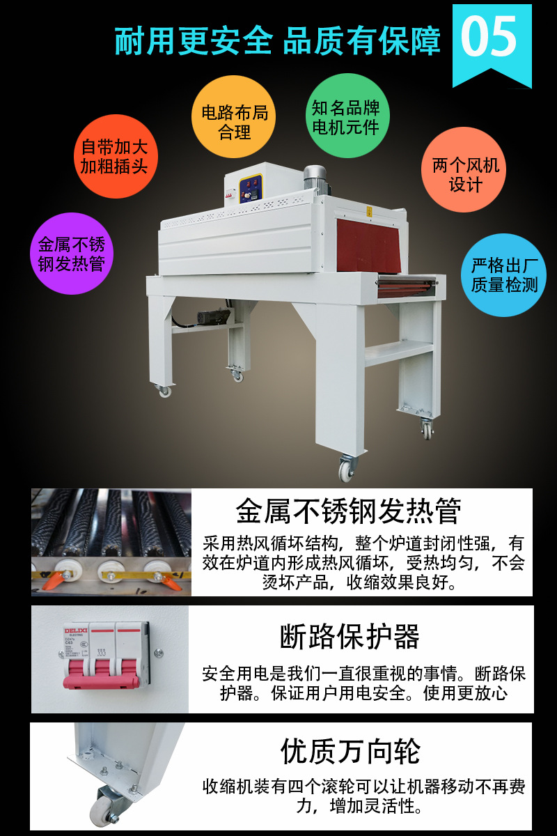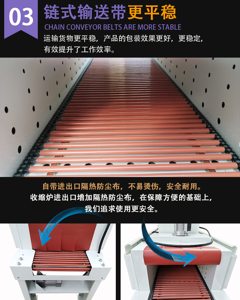 首先,我們需要將物品放入收縮機(jī)包裝盒內(nèi),然后調(diào)整好加熱時間和溫度。機(jī)器會自動跟蹤物品的高度,進(jìn)行自動加熱、收縮包裝。整個過程只需簡單操作,即可實現(xiàn)高效、高質(zhì)的包裝效果。熱收縮機(jī)還具備自動計數(shù)、缺料報警等功能,使得生產(chǎn)過程更加智能化、便捷。